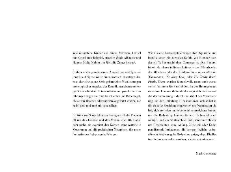 Arbeiten von Sonja Alhäuser und Hannes Malte MahlerAusstellung vom 9.9.–11.10.2009